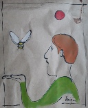 Werken zijn monoprints, getekende voorstellingen op papier die op een geïnkt vlak ligt. De voorstellingen worden zo in spiegelbeeld weergegeven op de achterzijde van het papier.